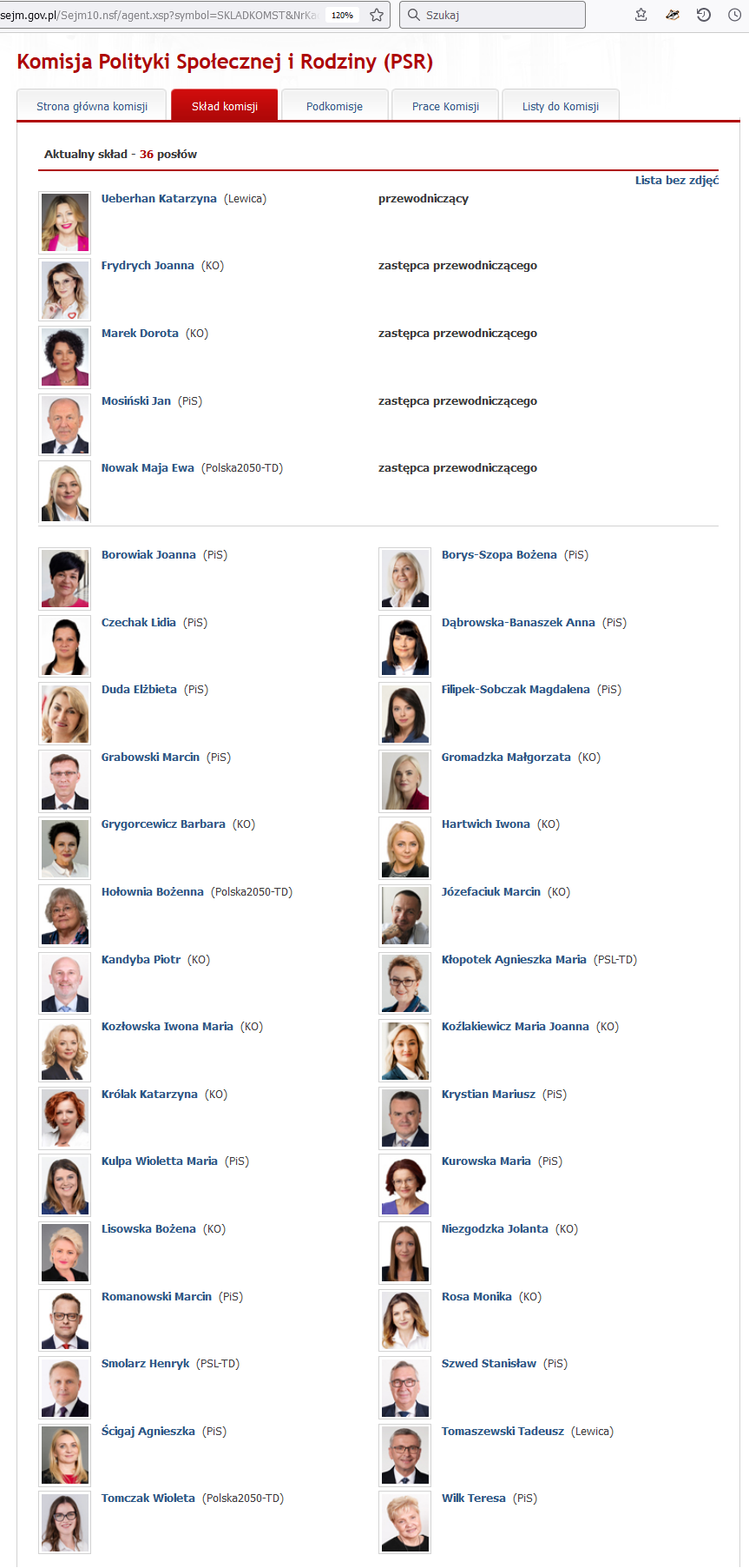 - Nowak Maja Ewa (Polska2050-TD) - zastępca przewodniczącego